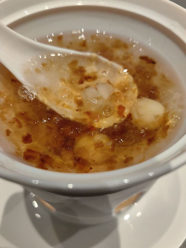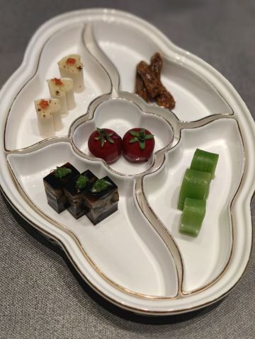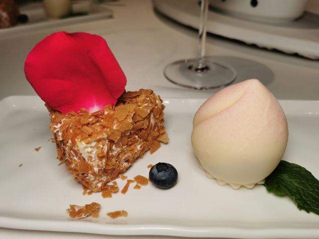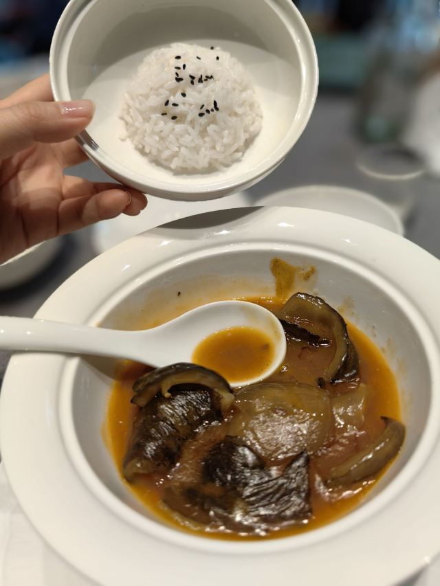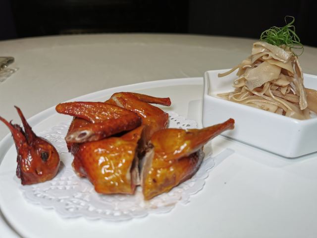老王探店打卡壹号餐房,头天中午饭点准备过去,结果说要预订,只有先预订,预订完后需要加接待员的微信先付订金,这个感觉不是蛮好。店内菜品都是以套餐形式推出,分500,700,900三个价位,每个套餐再分A、B套餐。我们选的900元/位的A餐,菜品都是事先搭配好的。 用餐体验还不错,一对一的服务,餐前先用银盆洗手再用餐,脆皮乳鸽拼油焖鲜笋,乳鸽皮脆肉嫩,还带着汁水,出品不错。油焖笋寡然无味,这个是败笔。红烧郧巴牛肋骨,烧制入味,就是味道偏咸。至尊佛跳墙,鲍鱼,鱼翅,海参等多种食材搭配,汤汁浓郁粘唇,味道鲜美。清汤羊肚菌,味道清甜适口。玫瑰焗银鳕鱼,鱼肉嫩滑。云南马龙干巴菌炒饭,石锅端上来还是滚烫,喜欢吃锅巴的可以放一会再拌,饭蛮香,要是搭配一小碟咸菜下饭就完美了,或者浓汤与饭一起上也行。餐后的甜品也很棒。用餐环境,整体的服务都不错,有些菜品还需提升!