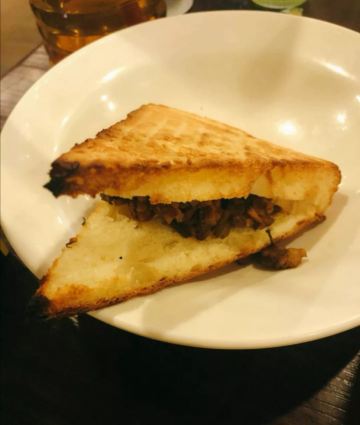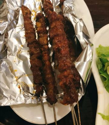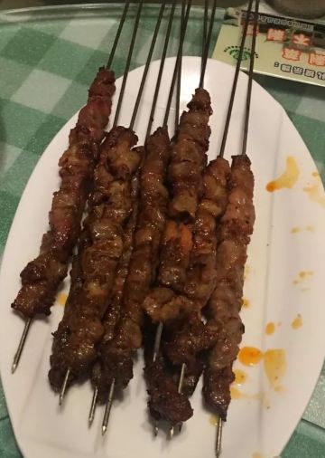 红焖羊肉,两个人一斤差不多了,煮的很烂,膻味去除的很干净,汤汁的味道带有一点点的微辣,吃完了还能加涮菜,菌类豆制品,必点招牌。羊肉串,肥瘦相间,很不错。羊肉夹馍,很脆,外面有芝麻,里面馅是肉沫,馍泡在红焖羊肉锅里很好吃。