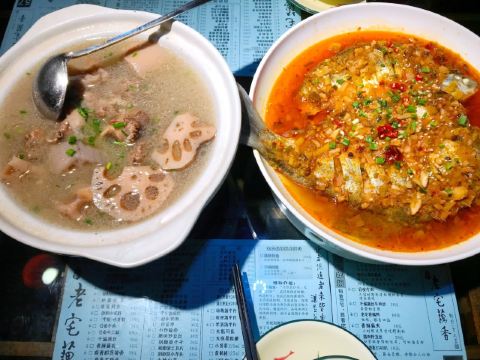 开屏清蒸武昌鱼,排骨藕汤,特色土匪武昌鱼,香酥藕夹,干煸藕丝,面窝,米粑,清蒸武昌鱼,公安牛肉,老宅香酥鸭,红烧武昌鱼,酸辣泡藕带,武昌鱼,热干面,葱烧武昌鱼,藕汤,臭干子烧肥肠,辣子鸡