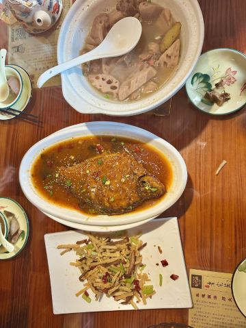 第一次来老宅藕香吃饭,菜品真的完全出乎我的意料,全是湖北的地道菜,也是让我感受到了老武汉真正的味道了,和朋友一起点了四个菜,不得不说藕汤真的太好喝了,藕汤泡饭真的一绝,红烧武昌鱼也很不错鱼的肉质特别鲜嫩,一吃就知道用的绝对是新鲜的鱼!服务员的态度也特别特别好,还特意给我们介绍了武昌鱼的吃法!