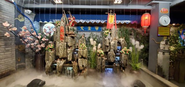 有特色的地方,选址选在了鹦鹉洲大桥桥头底下的外滩,等菜之余可以先去外滩逛逛风景,拍拍照,也可以在餐馆里看西游记,喝上免费的各种饮料,对于菜只有一个,甲鱼,味道挺特别的,我喜欢,很多人慕名而来,来晚了,等位置一小时以上