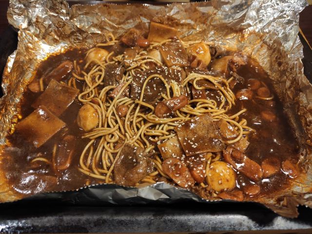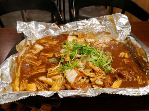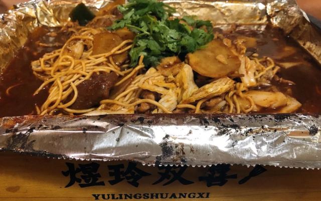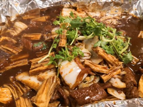 烤牛肉,热干面,金针菇,千页豆腐,土豆,藕片,大白菜,五花肉