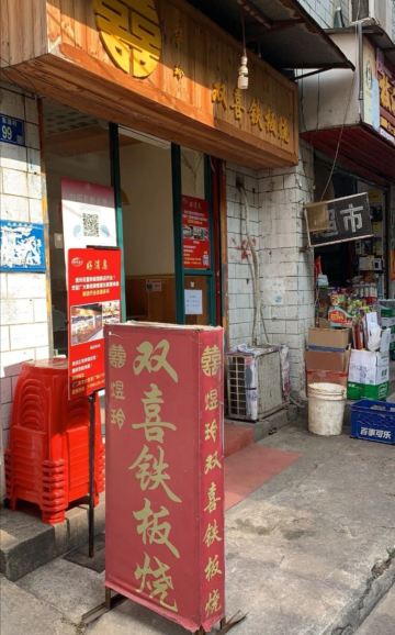 大武汉好吃佬舒怀骑车逛武大与东湖,三环公寓的热干面卖光,就穿入东湖新村,觅食,如迷宫。好在当年读书时候,习惯了这片区域,往事如昨,一一浮现。 本想吃胖哥饺子馆,没想到随意转到它正对面的巷子,意外发现武大周边的网红小店双喜铁板烧。 据说是七八年前一对中年夫妇所开,入夜常排队,没想到端午节中午还好。 服务员提示可以扫码点单,没找到之前网友推荐的年糕,遂点了牛肉腐竹与白菜,微辣加香菜,一人食足矣! 阿姨端上来时,会提示,铁板很烫,小心!米饭,要不要现在上?服务很贴心! 试菜,牛肉极嫩,应该是腌制过的。腐竹入味,吸饱了铁板烧汁液。口味重,需喝水~~后来发现,还可以加入热干面…… 小店里用矿泉水瓶插着鲜花,思量不知是谁这样的细心。服务员恰好问,阿姨说了,“是你爸捣鼓的啦~~” 双喜,价格划算,36元,面对学生群体,是属于学子们的青春宵夜。只是一味铁板烧主打,品种单调了点。近来似乎加了其他菜品,但多数还是守着一个铁板烧。(舒怀)