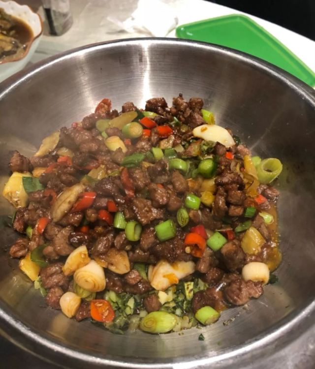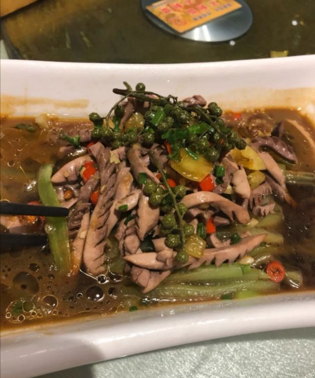 石锅牛蛙,这个菜一直是我的最爱,辣辣的,打底的酸萝卜很不错,椒盐鸭架,很棒,下酒正合适。平锅碎牛肉,味道还行,比较好吃。小雏鸭,基本每桌必点,他们家的招牌菜,水准很棒。腰花,很喜欢,好吃。
