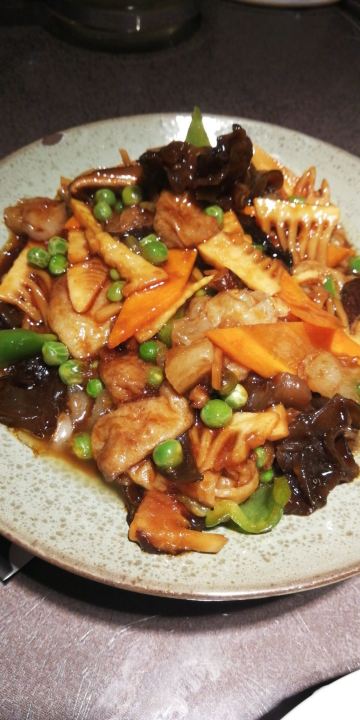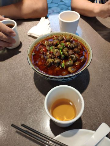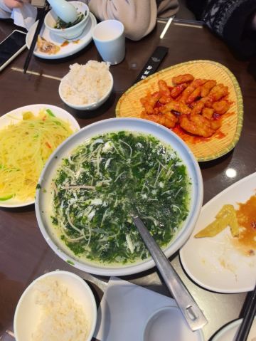 在拈花湾景区里的一家餐馆,离大莲花不远, 饭点去找十个人的圆台面还真不容易… 价格还是蛮实惠的,点了一份6人套餐, 又加了几个菜,人均100都没到… 毛血旺太太太大,料也很足, 白斩鸡是走地鸡,鸡肉嫩中带有嚼劲, 蚝油素什锦炒得很香,非常下饭, 酱爆螺蛳,大家一致公认好吃… 白水鱼、银鱼炒蛋都不错哦… 冷菜里喜欢卤鹌鹑蛋,入味!