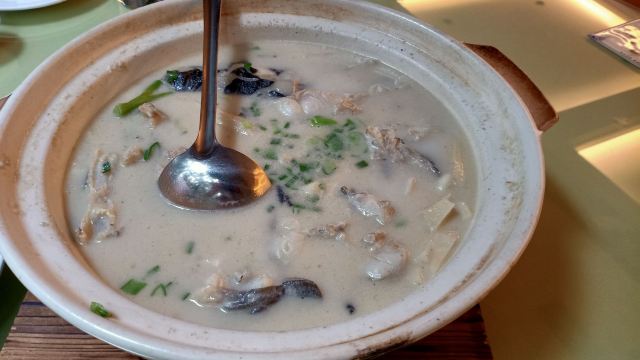 典型江南味道,鲜香浓汁。鮰魚肉细汤汁乳白,刺少好吃。大厨手艺好!桂花糖芋头香糯。泰國香米。 因今天婚宴,名菜脆鳝等多菜全点光了,下次再来吃。
