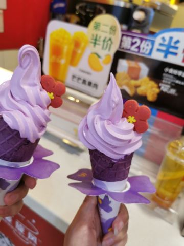 麦当劳出新款啦,一向喜欢巧克力甜筒的竟然被好看的紫薯征服,毫不犹豫的要了带有小红花的萌萌哒甜筒。可是口味特别,尝了一口就有改换巧克力了。