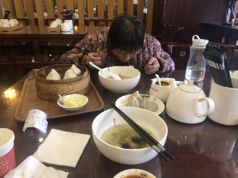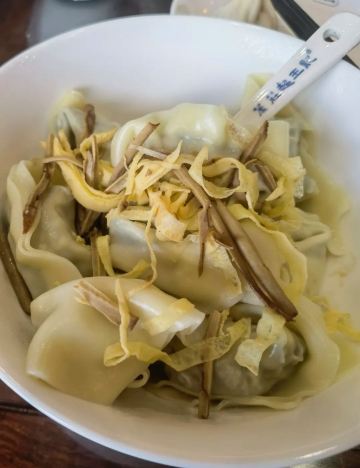 荠菜拌馄饨,甜甜的调味加上荠菜肉的咸鲜,非常符合无锡人的口味。雪菜肉丝干拌面,细面很劲道,雪菜量很足,肉丝少了点,有点甜。无锡小笼包,薄薄的皮,甜美的肉汁,好吃。