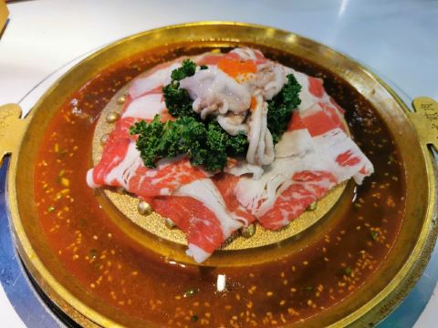 餐厅装饰不同于大多数火锅店,而是以黄色调为主,大气而深沉。门口有一个橱窗,可以看到厨师在切牛肉。高汤锅底的汤十分鲜美,喝了一口就停不下来了。牛杂和牛舌也是必点的。服务员态度很好,人均适中。