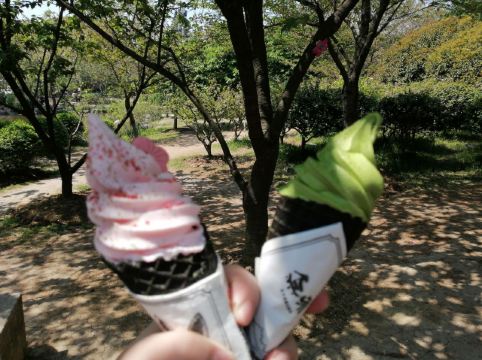 这家冰淇淋店位于鼋头渚樱花谷内,日式风格的小房很适合这里。据说冰淇淋品牌也是日本京都的。抹茶味的是经典口味,樱花季的限定口味也非常不错,加上一颗樱花饼干,颜值与美味并存。这里游客很多,要排队的哟。