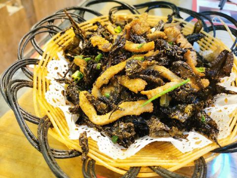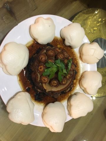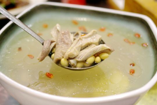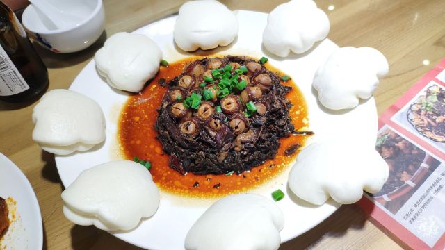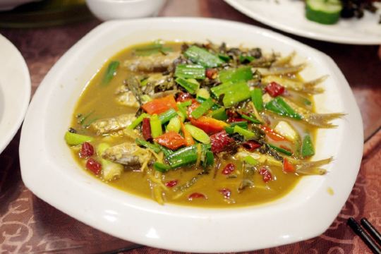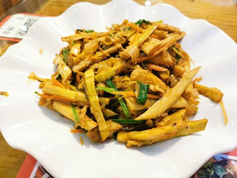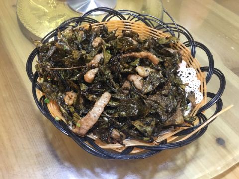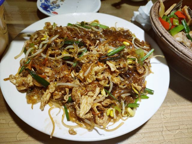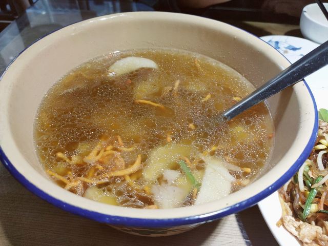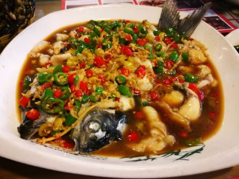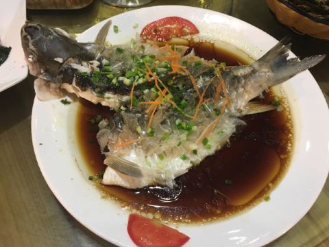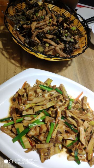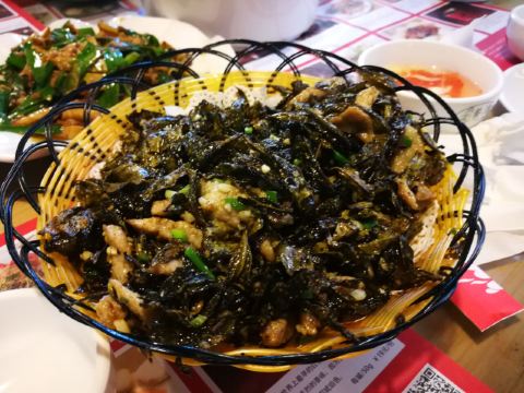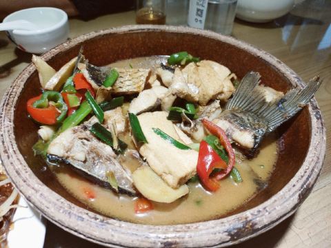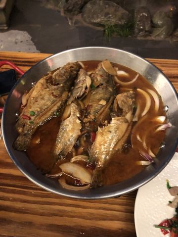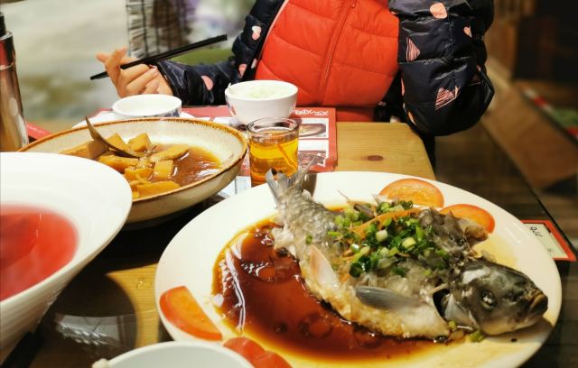 这家店就在我们住的旧街三号茶山房客栈楼下,人还是挺多的。 点了他们家的特色菜清蒸红眼鱼,因为是现煮现杀所以出菜比较慢,大概等了半小时,不过没有辜负等待,鱼肉超嫩,沾着汤汁味道比较好,就是吃到后面有点咸了。 肉桂飘香,肉应该是里脊肉,但是肉桂更多,确实是超香。 小笋酸菜,笋大部分都很嫩,和酸菜一起味道好极了。