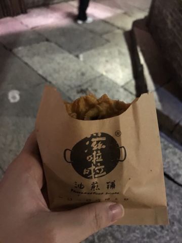 滋啦啦油煎铺在西栅景区内,萝卜丝饼3元一个,在景区内可以说是相当实惠的了。他家的人气也是旺得不行,几乎每天门前都排着长队,小小的店面里一个人负责下锅煎炸,一人负责收钱发纸袋子,付完钱后拿着纸袋子去取萝卜丝饼就可以了。 纯萝卜丝攥团油炸的,外面炸得金黄酥脆,里面香糯,味道非常好。买来之后最好趁热吃,特别香,因为稍微有些油,记得不要吃太多哦。