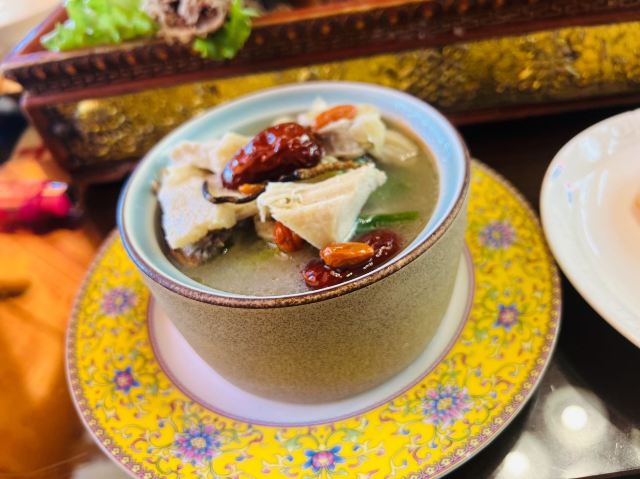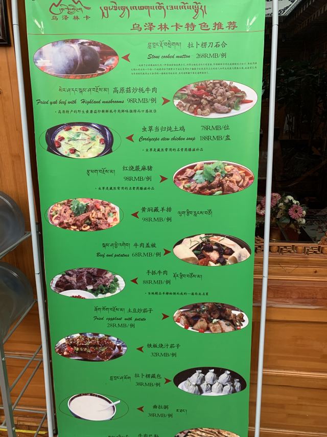 藏饭,奶茶,安多烤羊排,牛肉巴勒,石烹羊肉,酸奶人参果,酥油茶,烤蘑菇,拉卜楞藏包,牛肉盖被,酸奶,糌粑,手抓羊肉,藏包子,藏包,八宝饭,石头烤牛肉,金瓜汁烧土豆泥,酥油酸奶米饭,香辣血肠,八宝沙拉,奶酪丸子,石头烤羊肉