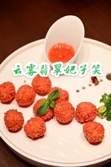 瑶柱烩自制豆腐,生啫珍菌鳕鱼煲,笼仔黑米蒸膏蟹,咕噜凤梨明虾球,北京酥不腻烤鸭,同安宝塔封肉配栗子饼,同安封肉饼,膏蟹蒸饭,红烧鱼头佛跳墙,川味沸腾鱼,芦笋芥末雪花牛,同安封肉