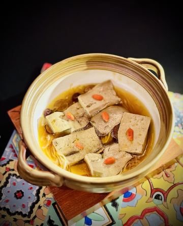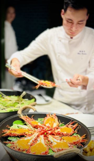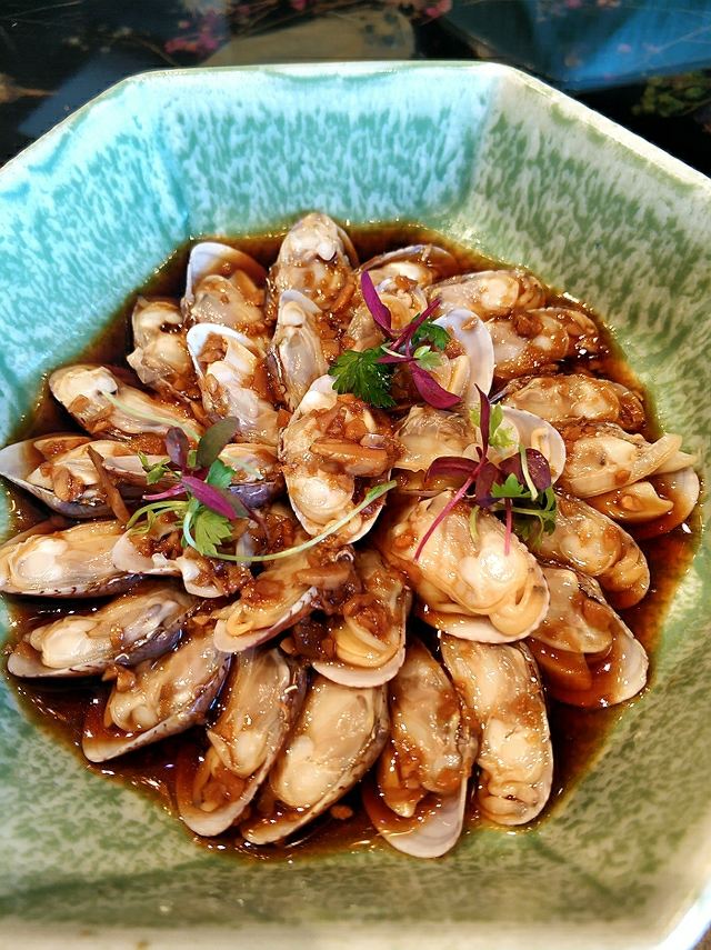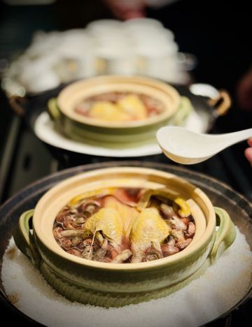 沙茶琉璃虾,姜母鸭,芥子酱安格斯牛肉,永春醋煮旺螺,古法酒香蒸闽东黄鱼,荔枝木蜜制叉烧拼烧腩仔,红菇炖手撕豆腐,黑椒海蛎小青龙,鹭岛燕窝粥,百香果渍,青青嫩韭灼小象拔蚌,鲜承海鲜泡饭