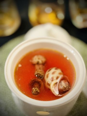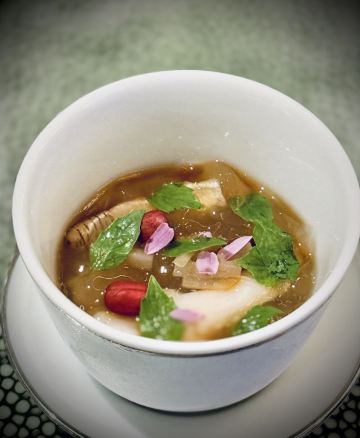 饭醉分子闫涛发现“福味” 今年主持第一场出省的“轩尼诗重新发现中国味”晚宴,地点是在号称“福建最强酒店中餐厅”的厦门华尔道夫鲜承餐厅。 看得出来酒店方对这一次授牌晚宴极其高度重视,为什么要说“极其高度”?说高度,是晚宴由一对师兄弟四手联弹,酒店的中餐大厨杜国金师傅和师兄弟宴遇福建荟馆的陈惠明师傅齐心上阵,联袂推出了一席丰盛的晚宴;说极其,是两位师傅的师父——当地的闽菜泰斗也被邀请到现场品味观战交流。 这种“高开高打”全力一击的拼劲,或许能解释近年来闽菜突然大放光彩的原因吧! 从文化角度来看福建的闽商比广东的潮商更加敢拼敢打,有种“野蛮生长”的气势。 从山川风物来讲,从前“八山一水一分田”的“八闽不相通”,如今却变成了文化样本的丰富性,山海之间已有不少美味奇珍,加之出海闯荡的同乡宗亲又带来异域珍馐,闽菜师傅可以发挥的空间太多了。 有家底,有劲头,难怪闽菜成为中餐发展的独角兽。 昨晚的宴席上有老味道升级迭代而来的精细版本,土笋冻、焗黄鱼等等都颇显原乡师傅的扎实功力。 “姜母炸胶公”颇有创意,老姜谓之姜母,上等公鱼肚名曰花胶公,胶公绵柔隽永,姜母辛香收敛,一公一母,饶有趣味。 天下客家之“祖庭”其实不在广东梅州,而在福建长汀,一道脱胎于客家娘酒鸡的“鸡汤酒煮肥鸭肝”相当不俗,鸭肝的腥臊臭被完全克制,近乎低温慢煮的火候控制让鸭肝柔若无骨,不逊于上等鹅肝。 最让我欣赏玩味的是前菜的那一道凉菜猪耳,心思巧妙的厨师竟然用大管鱿鱼拆丝来束缚猪耳,两般爽脆让人颊齿留香。 我非常认同辉哥对于闽菜的描述,这是一场“鲜味的暴击”,福建厨师对鲜味的运用狂狷不羁,让人有些猝不及防,幸亏一杯在手,美酒佳肴,同销万古愁。