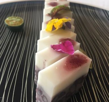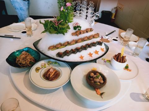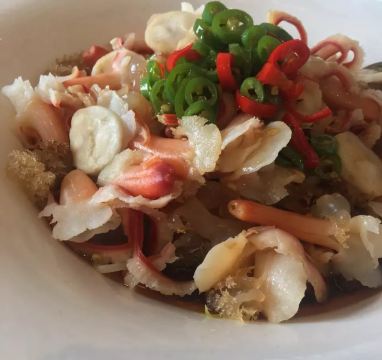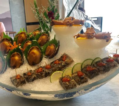 游代紫后宫嫔妃,佳丽三千的那个佳丽吗? NoNoNo,一切美好的东西都可以被称为佳丽,是景是人是食,是如沐春风是宾至如归是垂涎欲滴。 离海很近,甚至可以更近。定的包厢远景是海,近景是沙滩。也就是太近了,窗户紧闭,难保有人一燥热想下去泡个澡什么的。。。 开胃菜四碟,鹌鹑蛋酸萝卜开了个好头,更饿了。土笋冻目鱼冰草拼盘,这造型一出来我一度以为会有日本艺妓来一段舞蹈,然鹅并没有,作为凉菜也是本土特色。双椒蒸青斑鱼,鱼肉弹性,火候掌握在行。咸蛋黄焗山药,第一次见山药这么操作,意料之外的好吃,酥香软糯。石锅川味老豆腐烧虾仁,川味没吃出来,虾仁鲜美,老豆腐吸味,除了底有点油,味道却是很好。夏果香辣鸡软骨,主角是鸡软骨,夏威夷果作为配角风头更甚,过了下油,更脆香了。石锅紫菜饭,粒粒分明的饭粒,配料丰富,精确到每粒米饭的口感,手艺太精准。 佳丽,不枉此行。