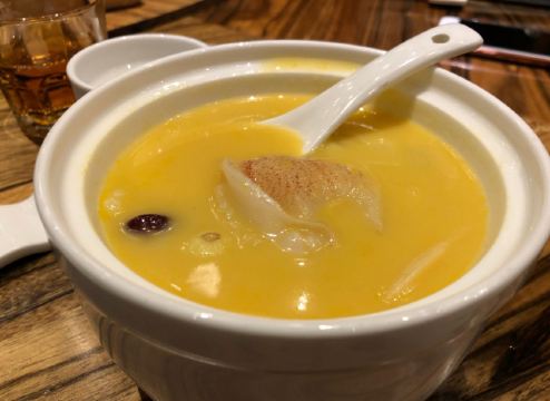 昂首前行很喜欢这家餐厅的装修风格,厅很大,整洁干净,自助水果为时令水果,很新鲜,小菜款式多味道清谈,特别喜欢那里的米汤和炸果汁,上菜速度很快,服务也很周到。