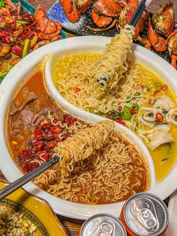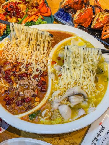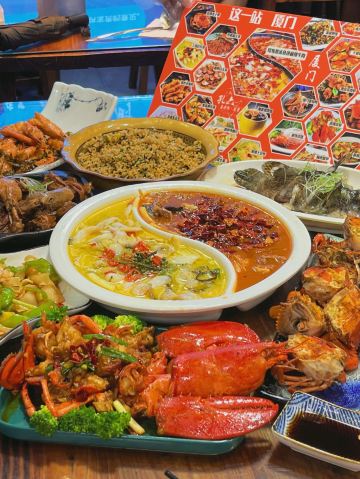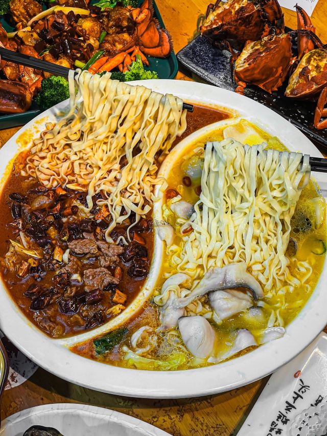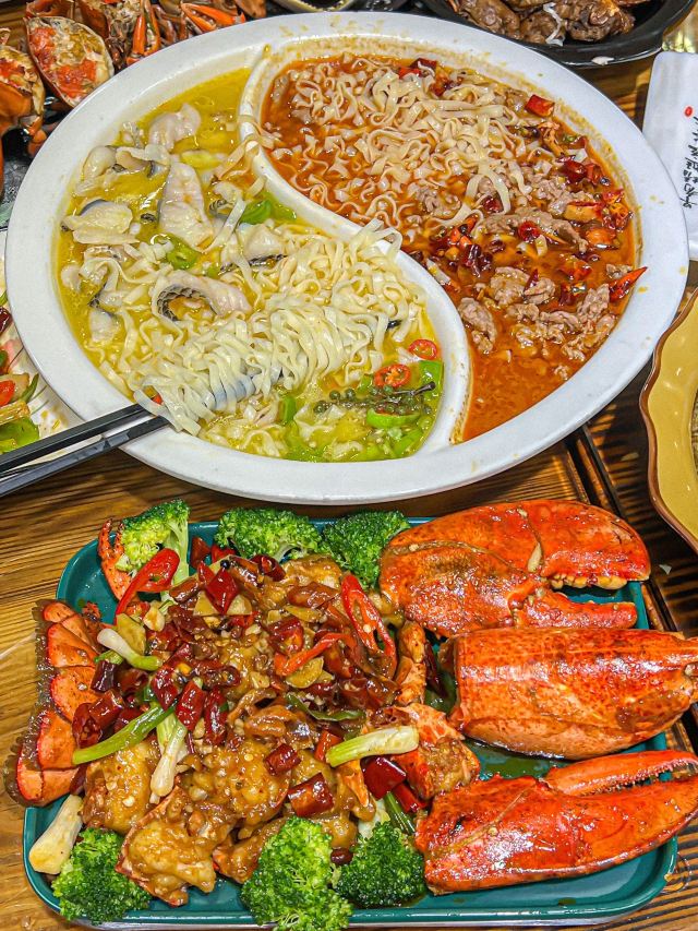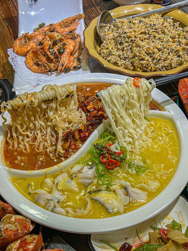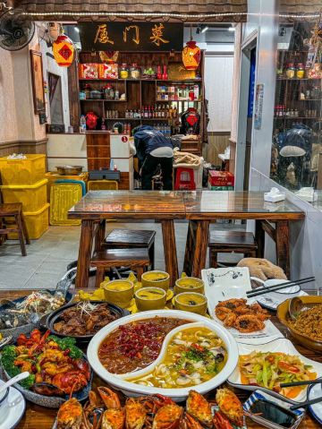奶黄包包🧸厦门这一家我真的夸累了!在曾厝垵人均六七十就可以大饱口福!!经常带家人来吃 吃完都是夸夸夸~ 吃不腻的!! 干煎红膏蟹:让我最念念不忘的就是煎蟹!满满的蟹膏 进门就被这个香味给迷住了!蟹肉鲜甜 超爱这口😭 厦门姜母鸭:厦门人都拒绝不了这一口吧!他们家的姜母鸭好吃 真的做到了鲜嫩多汁 完全不柴!里面的姜也好吃哦 麻辣牛肉拼酸汤鱼:双拼是谁想出来的hh!一次吃到两种口味 满足了我这个小馋猫 牛肉嫩嫩的香辣的口味越吃越有滋味 酸汤鱼酸爽够味 多加了一份面下去拌着吃 好好炫! 香辣波士顿龙虾:炒的很入味 一嗦肉就掉下来了 香香辣辣的吃起来很过瘾 最快空盘的一道! 紫菜炒饭:朴实无华的炒饭居然那么好吃!加了脆香脆香的 米饭颗颗分明 朋友们一致好评