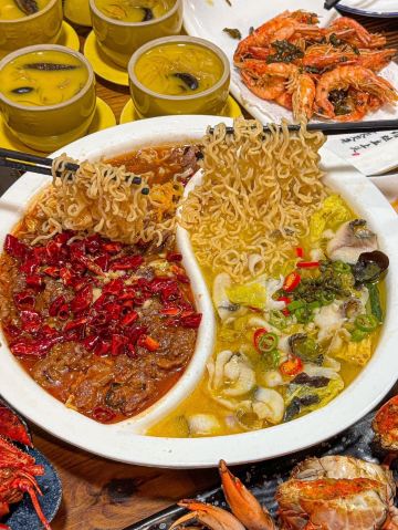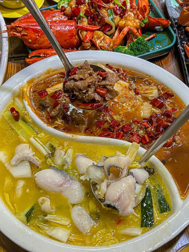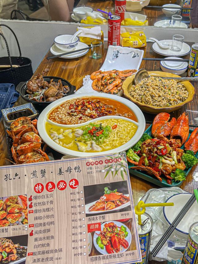 廈門看海去那裡? 曾厝垵的對面就是看海的地方🌊 看完大海還可以看日落 看完日落就要吃飯了呀 直接就是给你安利一家好吃的海鲜🦞 这家海鲜都很好吃,平价又新鲜 这两三年吃了3-5次了这家 朋友来也是说这家好吃【孔六煎蟹·姜母鸭】 这家的海鲜好吃,又新鲜,价格也美丽!麻辣牛肉和酸汤鱼双拼,好好吃,里面在加一些泡面🍜,真的很爱,一边辣辣的,一边酸酸的,好吃! 香辣波斯顿龙虾🦞,肉肉很多,香辣的口感,一口下去超满足❤️,在搭配干煎红膏蟹🦀️也是很绝,好好吃,上面都是膏,满满的都是蟹黄😭,货真价实的呀!没有对比就没有伤害,认准这家😭,还点了干锅椒盐虾,里面搭配海苔,很新鲜的虾肉,也是好吃的!‼️他们家的紫菜炒饭也是不能错过,好好吃,我一个人吃了3碗还不夸张😭,嘎嘎香😭