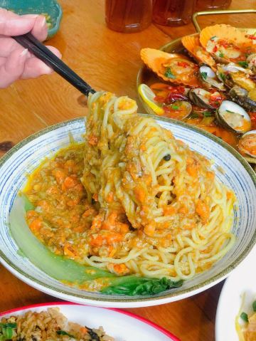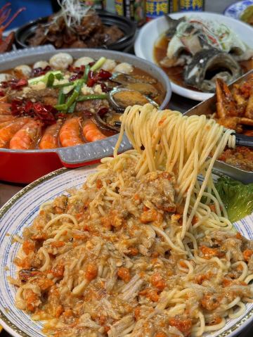 这家蟹黄拌面一吃一个不吱声! 周末又带家里人来这家海鲜餐厅聚餐了!! 久久不吃真的好想念他们家的海鲜! 菜品平价又好吃😋 海鲜都是现捞现做,主打一个新鲜! 真的很难不爱他们家的菜!每次来都吃撑! 推荐: ✔️膏蟹拌面 用饭盒装着满满的膏蟹,太肥美了!!又有颜值!味道又香!下面还铺满了面条,香辣可口~我可太爱吃了! ✔️蟹黄拌面 蟹黄很实在!满满当当一大份,把蟹黄淋在面条上面,面条很劲道,一口下去都裹满了酱汁,简直太香了,忍不住咽了咽口水🤤真的太好吃了,直接炫完! ✔️香辣波士顿龙虾 龙虾个头真的很大!肉质紧实又饱满,又鲜又入味的,谁能拒绝得了这一口龙虾肉 ✔️缤纷海鲜锅 一上桌就闻到了香味,香气扑鼻!!一大份海鲜,分量十足!有大虾、鲍鱼、章鱼、煎鱼等等,这么一大锅想吃什么海鲜都有!太实惠了! 📍草莓夫妇丨厦门菜(黄厝店) 环岛南路黄厝溪头下70号(最美环岛线) #厦门美食#厦门旅游#黄厝美食美食#溪头下美食#