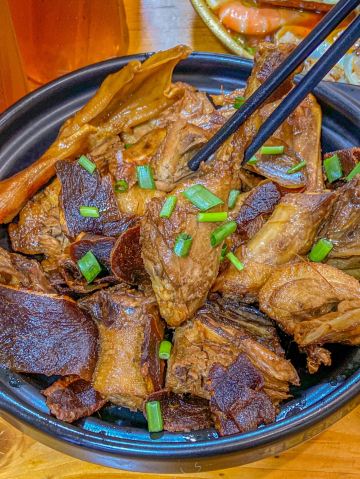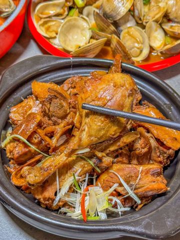 蜜桃浪味仙(厦门)去完黄厝海滩直奔这家店!!!! 在溪头下公交站附近~靠马路边,连工作日晚上都爆满的店!!海鲜都是明码标价现捞现做的,安利给了好几个来厦门环岛路玩的姐妹,看完海就可以过来吃,性价比超高滴!! . ✔️海鲜缤纷锅(海鲜种类很丰富满满一大盘,份量很大,而且色泽很好看,光看着就很新鲜~里面有鲍鱼、虾蟹、花壳,蘸着汤汁一起尝起来鲜嫩入味 ✔️佛跳墙(闽菜的特色菜~有鲍鱼、海参…一起吃下去感觉很滋补~冬天快来了就适合喝暖胃的🥣 ✔️饭盒波龙拌面(拌面吸满海鲜味的汤汁,很q弹~波龙很大只肉质也很紧实 ✔️姜母鸭(鸭肉炖得软烂入味,不柴而且很下饭 . 🦞:草莓夫妇丨厦门菜(黄厝店)