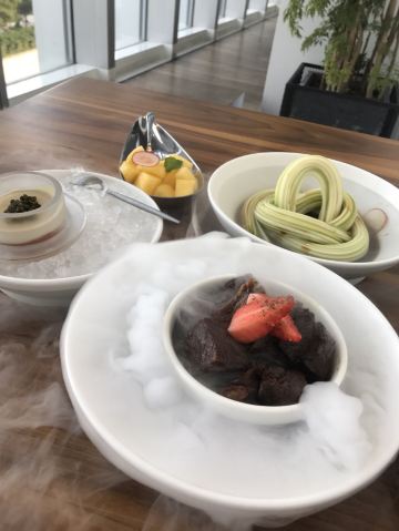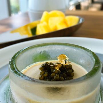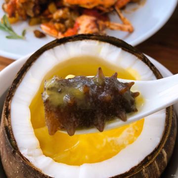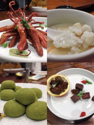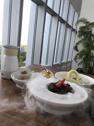 YoYo_3Y6T9J8W來這裡用餐,絕對是一種奢華的體驗 在未曾拜訪這家餐廳之前,我可能會認為我也算是有在些許家「高級」的餐廳用過餐的,可當我拜訪過後,我很清楚的認識到「奢華」與「精緻」間的不同了。 如果我沒有記錯,餐廳的佔地很像是JFC品尚中心C館的三層,出電梯後的室內置景是令我震撼的,不過可惜的是當時我到餐廳用的是晚餐,沒能很好的欣賞到餐廳大片大片的落地玻璃外的景色。 除去餐廳的裝潢風格外,餐廳所供應的菜品也是極盡奢華之能事。 令我記憶猶新的一道菜品是「山楂鵝肝配鱘魚子醬」(可惜我沒有拍好),鵝肝與山楂分為上下兩層,勺子輕輕一舀,兩種食材被一道取出,品嘗時,鵝肝綿密的口感,加之山楂甜中帶酸的點綴,整道食材搭配的天衣無縫。 另外一道令我印象深刻的菜品是「私廚葉子海鮮蚌雞湯」,我個人認為,這道菜品完全不輸給其他以「椰子雞」為賣點的餐廳,湯頭椰香十足,入口後除去雞湯的香濃外,椰子的清甜也十分鮮明,絕對不是那種簡簡單單的「椰子跟雞煮一煮而已」。 如果是兩人用餐的話,我個人建議點上我上述兩道菜品,外加「獅城麥片小青龍」以及「香茅辣子羔羊肉」,以一個中上的價格,留下一段美好的回憶。