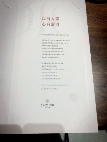 CHIC1699來這裡用餐,絕對是一種奢華的體驗 在未曾拜訪這家餐廳之前,我可能會認為我也算是有在些許家「高級」的餐廳用過餐的,可當我拜訪過後,我很清楚的認識到「奢華」與「精緻」間的不同了。 如果我沒有記錯,餐廳的佔地很像是JFC品尚中心C館的三層,出電梯後的室內置景是令我震撼的,不過可惜的是當時我到餐廳用的是晚餐,沒能很好的欣賞到餐廳大片大片的落地玻璃外的景色。 除去餐廳的裝潢風格外,餐廳所供應的菜品也是極盡奢華之能事。 令我記憶猶新的一道菜品是「山楂鵝肝配鱘魚子醬」(可惜我沒有拍好),鵝肝與山楂分為上下兩層,勺子輕輕一舀,兩種食材被一道取出,品嘗時,鵝肝綿密的口感,加之山楂甜中帶酸的點綴,整道食材搭配的天衣無縫。 另外一道令我印象深刻的菜品是「私廚葉子海鮮蚌雞湯」,我個人認為,這道菜品完全不輸給其他以「椰子雞」為賣點的餐廳,湯頭椰香十足,入口後除去雞湯的香濃外,椰子的清甜也十分鮮明,絕對不是那種簡簡單單的「椰子跟雞煮一煮而已」。 如果是兩人用餐的話,我個人建議點上我上述兩道菜品,外加「獅城麥片小青龍」以及「香茅辣子羔羊肉」,以一個中上的價格,留下一段美好的回憶。