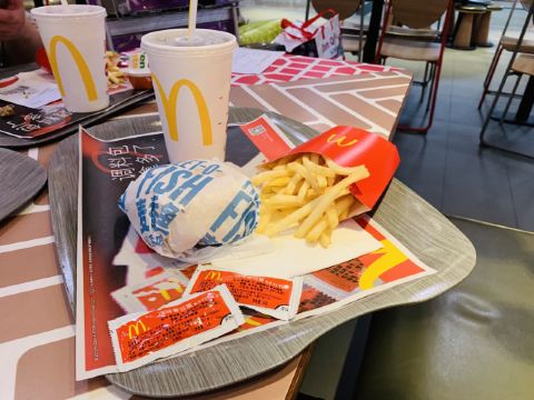 非常时期,飞机餐都不敢吃,一下飞机拿完行李出来后,右转就看到这家麦当劳了。 晚上10点多,店里人不多,加两快递员还不足10个人。店里环境还不错,不过不让拍照,我才拍了两张,就被阻止了。 很久没吃麦香鱼了,点了个麦香鱼的套餐,可能是冷门套餐的关系,比小伙伴的套餐准备时间要多点,味道还是一如即往的好。