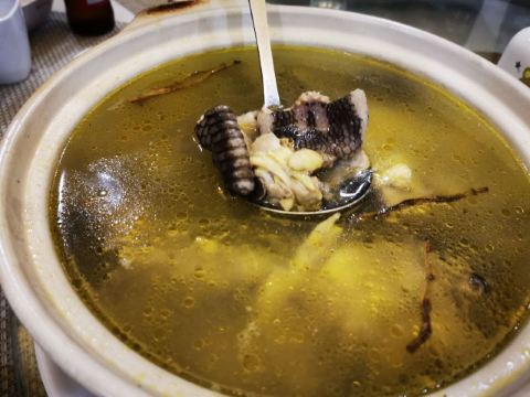 金椒野大桂鱼,平底锅雪花牛肉,干煎松茸水饺,土蕃鸭膏蟹汤,牛四宝汤,山猪肚炖莲子汤,干煎野化黄花鱼,锅仔猪肚焖鹿茸菇,野生地木耳炒土鸡蛋,老蛏丝瓜煲