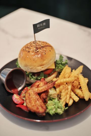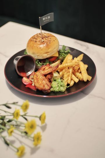 翻乐颂•精致西式餐🥂,厦门游很多家门店,📍瑞景C区一层就有一家🍴,环境清新自然,主要做精致✨的简餐西餐🍽。 手工牛肉汉堡套餐🍔,纯手工现点现做的牛肉汉堡🐮,肉饼大块又厚又多汁🔥,夹上芝士片、生菜🌿、西红柿🍅,一口下去好满足。还配有鸡腿鸡翅🍗,薯条🍟和沙拉🥗,营养均衡又美味。 牛排配黑胡椒意面🍝,牛排肉鲜美多汁🐮,意面选用粗粉,搅拌均匀🍴,每一口都有入味的黑胡椒味🍝,够吃够饱🍽。