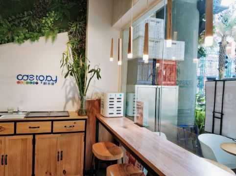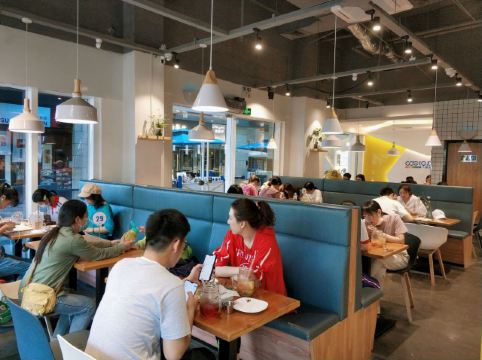 franceteam前段时间的海沧消费券活动,与小伙伴各抽中一张。于是,便安排了午餐晚餐,来个海沧半日游。但午餐与晚餐之间时间实在有点长,天气又热。原本打算去书店看会书,结果看没一会就犯困了。没办法,骨子里就是不爱读书,装不了文化人。最终决定还是做回吃货本色,加餐一顿下午茶——翻乐颂(阿罗海城市广场店)! 店址位于滨湖北二路60-80号B132、B133单元,阿罗海城市广场中庭广场右手边,中段略靠海沧湖一侧,门前有露天位。位置其实还蛮明显的,只是对阿罗海城市广场不太熟悉的人,找起来可能要花点时间。 [薄荷]环境: 明亮的轻食餐厅风格,大大的落地窗,明亮的主色调,大吧台暖色光,仿真绿植,木桌,沙发椅...座位以双人位为主,彼此之间的间距有些窄。人多的时候,感觉挺嘈杂的。 菜品: |香松薯条^比较松软,味道中规中矩,比较不同的是,加了日式拌饭素[惊讶],但感觉并没有很特别。 |蜂蜜鸡中翅^鸡翅个头较小,烤的有些过,没什么汁水,口感一般吧。 |水果茶^水果新鲜度一般,不差也不是很新鲜的状态。糖浆比较多,甜度过甜,不合心水。 |洛神草莓蜂蜜茶^小伙伴喝的,不做评论。 [服务铃]服务: 店员小姐姐似乎熟练度不够。虽然当天人比较多,但送餐,撤盘,效率也还是偏低了一点。简单的两杯水,一盘鸡翅和一份薯条,上了将近半小时。隔壁桌客人走了许久,也不见收拾。服务方面只能说一般。 总评,翻乐颂岛内几家店,大部分去过,印象还不错。但海沧分店,各方面水平明显相差比较多,仍需努力啊!