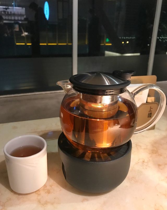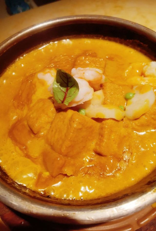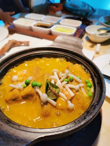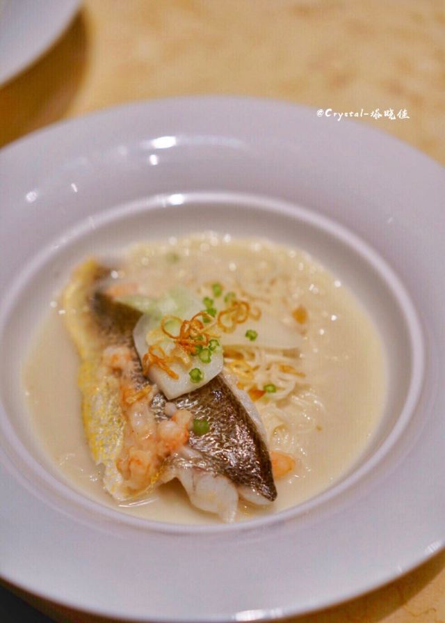 一直在路上的猫厦门探店|上饍冬日甄选|香浓的羊肉汤暖身暖胃 👉【特色】以“尽善尽美,闽粤融合”为为品牌理念,主打地道闽粤菜,各款山海鲜食。根据季节推出不同主打菜系,招牌烤鸭每桌必点。 📍地址:环岛东路JFC品尚中心B馆4楼。 🕐营业时间:11:00-14:30,17:00-21:00。 🏝环境:高端大气上档次。暗色调使人放松。就算是二人座也很宽敞,皮质沙发坐的十分舒适。 🍽【推荐美食】: 🛎 #滋补鲨鱼丸羊肉汤配油条# 冬季推出的新菜之一。以小火锅方式呈现。肥而不腻带皮的东山羊肉,闽南特色的鲨鱼丸,想不到二者搭配激发出独特的味蕾体验。汤奶白香浓美味。羊肉蘸点搭配的腐乳酱汁特别好吃。鲨鱼丸劲道Q弹。还有丰富的配菜,白萝卜、淮山、玉米等,饱吸肉汤,也格外美味。 油条是现炸的,端上来还热乎乎,会贴心帮忙切成小块,趁热赶快单口吃一个,酥香脆。亦可泡羊肉汤吃,吸了满满的羊肉汤,太美味了!推荐必点,寒冷的冬日一吃就暖和起来的菜。 🛎 #杏香烟熏带鱼卷# ✨不看菜单我根本看不出这是带鱼卷,摆盘特别惊艳。带鱼去了骨炸的外酥里嫩,蘸点糖霜,既有海鲜的咸香又有蜜汁的味道,丰富的口感我很喜欢。 🛎 #油醋有机小瓜丝# 开胃凉菜,酸甜度把握得恰到好处。瓜丝非常脆嫩。 👍服务非常好。从进门就感受到五星级酒店般服务。还有赠送餐前水果和点心。在这里吃饭是一种享受!
