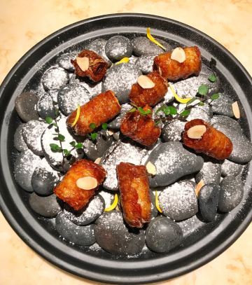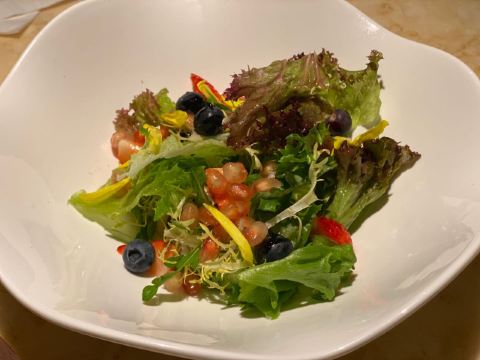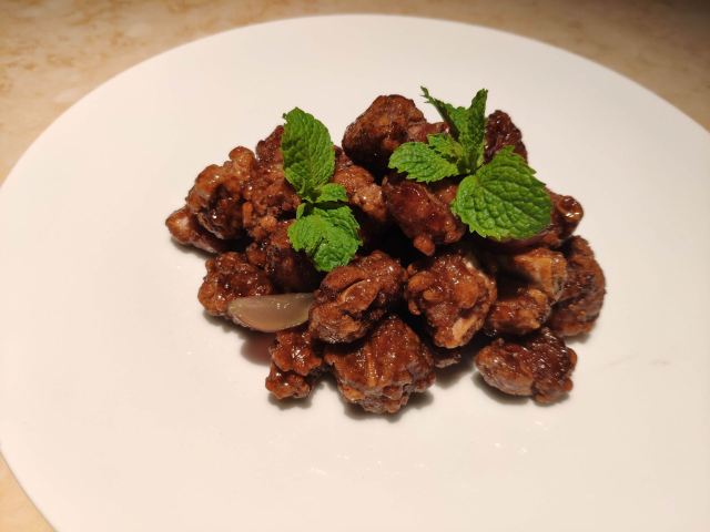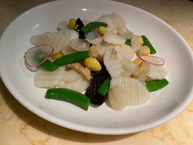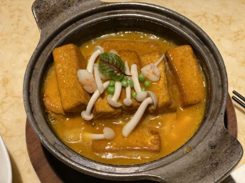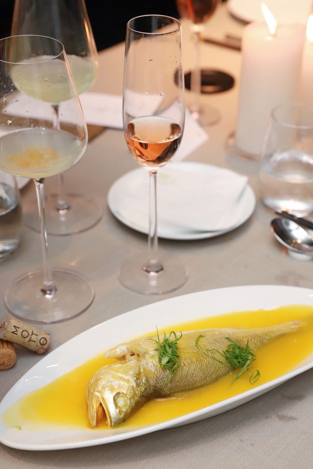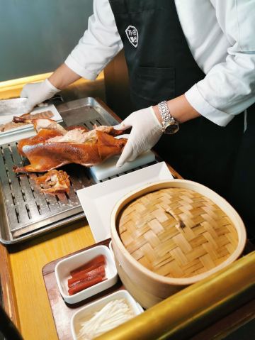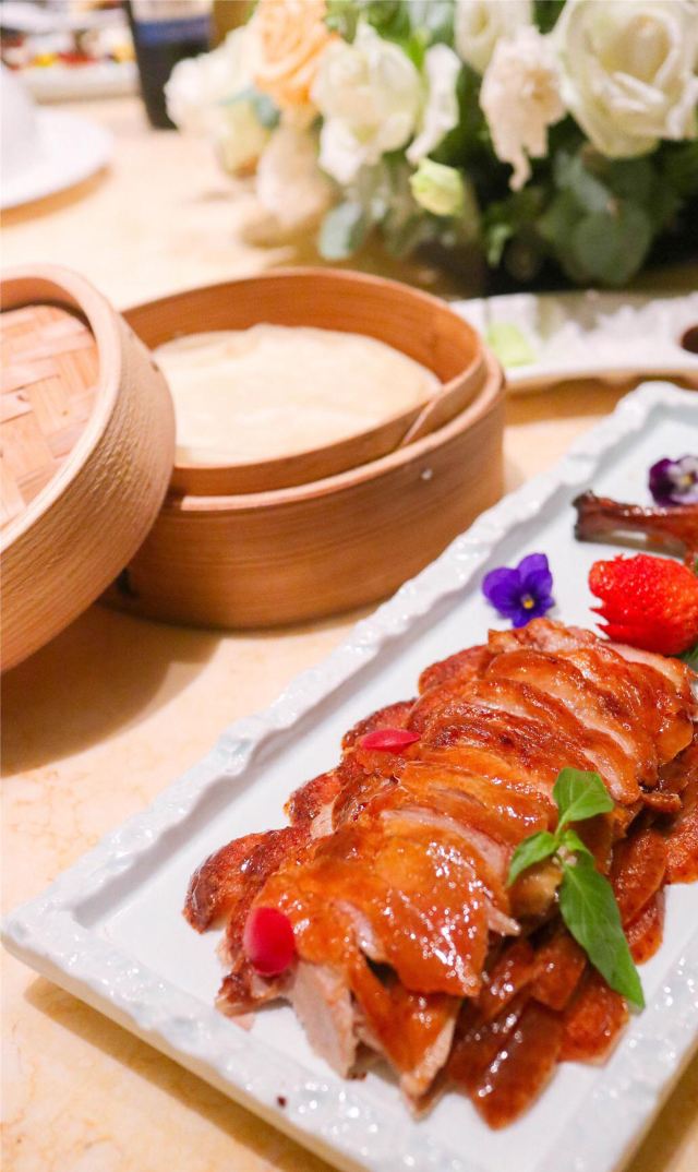 老北京挂炉烤鸭,黑松露藤椒蒸龙胆斑,金汤自制黑豆腐,油醋有机小瓜丝,鲜花椒泡菜龙胆斑,香焗东山灯捕小管,山泉水石橄榄炖肉汁,黑叉烧菠菜饭