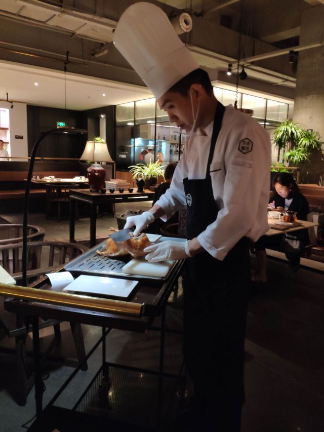 主打创意菜的餐厅,装修和食材都非常精致,集合了多种菜色,服务很到位,每桌都有水果,烤鸭比较走俏,皮脆而不腻,饼皮薄而有韧性,来吃前建议电话预订。