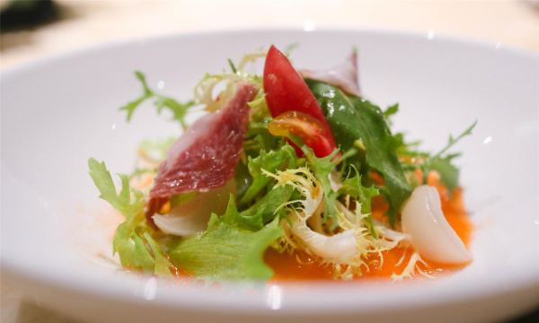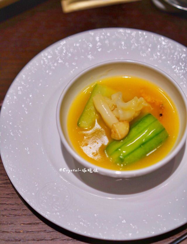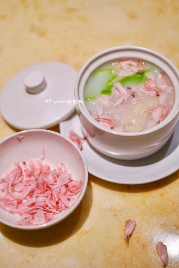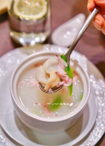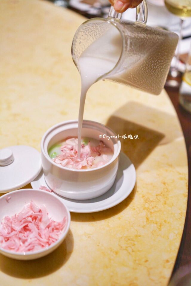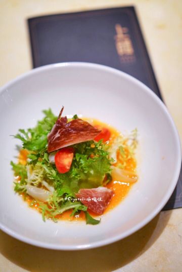 Crystal-塔晓佳夏时夏食,将夏日的食物揉进胃里。素有中国厨房之称的上饍餐厅位于JFC品尚中心B馆四层,精心选取夏日新鲜应季食材,给食客别出心裁的夏日美食体验。   「荔枝伊比利亚火腿沙拉」清爽沙拉中别出心裁地加入了荔枝粒,甜蜜的口感与伊比利亚火腿的咸香在唇齿间碰撞,带着红菜头香的油醋汁令人难以抗拒。   「粥水翅针贵妃蚌」光是颜值就足以惊艳全场❗️一盅盅白色汤罐里置入烹制过的贵妃蚌、鱼翅和芦笋叶,倒入滚烫的米汤,再将一片片木槿花瓣如天女散花般撒入汤品之上......梦幻浪漫的粉色花瓣,在米汤的醇香与海鲜的清甜中,带着一丝微甜的味道。贵妃蚌与鱼翅的柔滑脆韧,一秒就爱上。   「鲟鱼子酱北京烤鸭」上饍的北京烤鸭实行预约制,只有在到店之前提前预约才能吃上。只见片鸭师傅三下两下便将通体焦黄的整只烤鸭片皮切肉。腹部最中间的精华部分,便拿来做成了鲟鱼子片皮鸭。这可是最近流行的一种新派吃法,在面包片上叠上烤鸭片,再放上顶级鲟鱼子酱,造型精致可人,入口既有烤鸭皮的酥脆,又有鱼子酱的爆破感,口感棒极。  「樱花虾花胶翡翠丝瓜」将花胶与清甜软嫩的翡翠丝瓜相烩,当香浓绵稠的清甜缓缓入胃。口间弥留的回甘,也在唇上留下满足的弧度。 「海钓黄鱼煮面线」全然不同于平日黄鱼口感,奥秘竟然在于铺满黄鱼背面的虾滑!滑嫩鱼肉与Q弹虾滑的完美结合,顺滑又不失弹性的面线,唇齿留香。