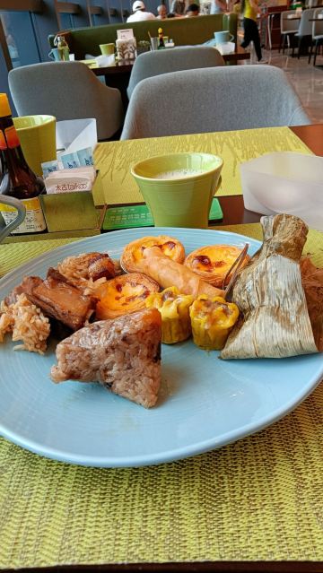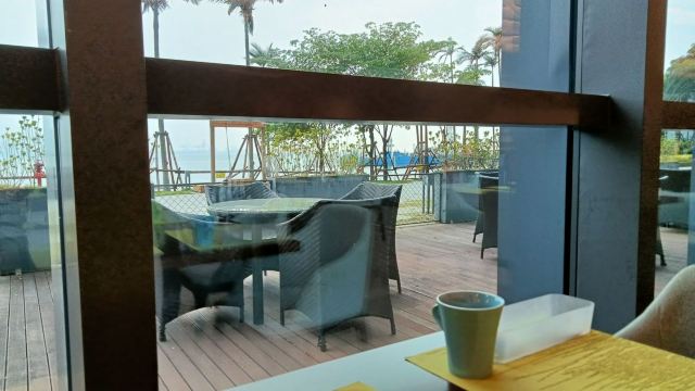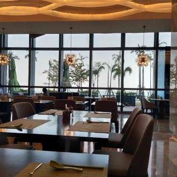 恰恰自助餐厅,位于海边,预订的时候可以提前选择靠窗的位置,风景很不错(带娃的家长可以选择在餐厅自带的儿童乐园边上,方便照顾孩子)。 佛跳墙就是中规中矩的味道,但是很值得一提的是他们家的鹅肝,真的煎的很好吃,一点腥味都没有。还有甜的蛋糕,用的是动物性奶油,好吃。牛排,羊排煎的也很好,外焦里嫩个。 菜品种类蛮多的,主打的海鲜我就觉得一般般啦!螃蟹个头比较小,但是肉肥,牡蛎和虾都是新鲜的,但是加工方式比较单一,只有煮熟,不过因为食材新鲜,保留了食材淡淡的甜味,还是不错的。 我是中午去的,感觉性价比还是不错的!