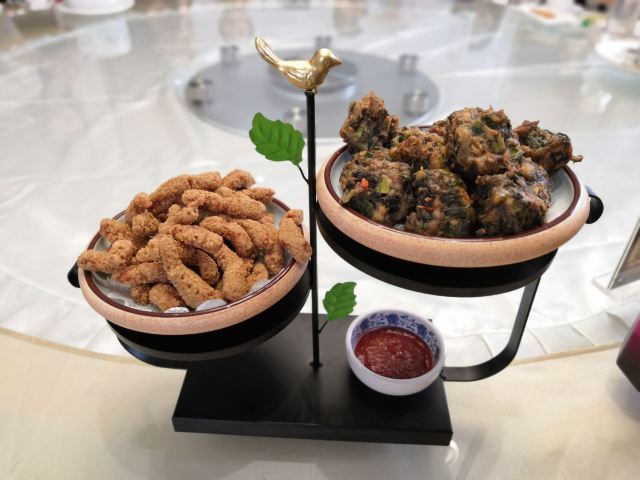 避风港海鲜城,离大海只有几米之遥,岸边可见许多船只,整个海鲜城的面积估计有好几千平方米,一楼是巨大的海鲜池点菜区和大堂,二、三楼有50几间包厢。今天的聚餐被安排在国宾3包厢,此包厢可容纳18人/桌,欧式风格,干净舒适。 停车方便,门口就是一个硕大的停车场,收费标准每小时五元,在海鲜城吃饭没办法冲抵停车费。 ️美食篇️ 【精美四彩碟】餐前小菜:腌萝卜、话梅芸豆……,口味都非常棒。 【港式煎雪花牛肉】特别喜欢吃这盘,雪花牛肉切成丁状,煎得外香里嫩,沾黑椒酱汁,牛肉CP黑椒酱! 【避风塘青脚蟹】在大排档经常吃到清蒸的蟹,改变一下做法,或许可以触动你的味蕾。 【红豆莲子焖中鲍鱼】红豆莲子入口绵绵柔柔,口味不错。 【绝味龙胆鱼】采用深海的大只龙胆鱼做食材,厚厚的鱼皮,充满着浓浓的胶原蛋白,明炉炖煮,味道香浓。 【果汁套餐】128元/4轧,包含的玉米汁、百香果汁、五谷杂粮、芒果汁,两个热饮,两个冷饮,夏冬皆宜! …… 避风港海鲜城会是一个吃尽厦门海鲜不可多得的好去处,也可自带海鲜收取加工费。