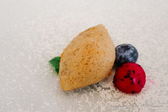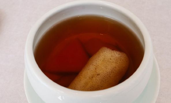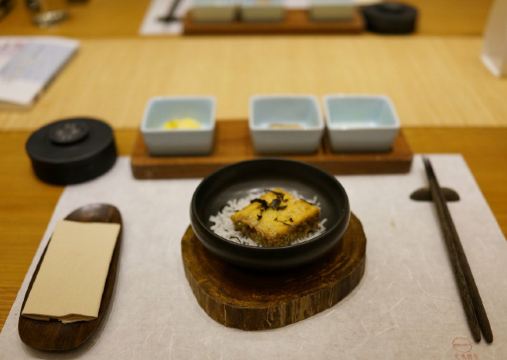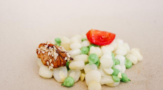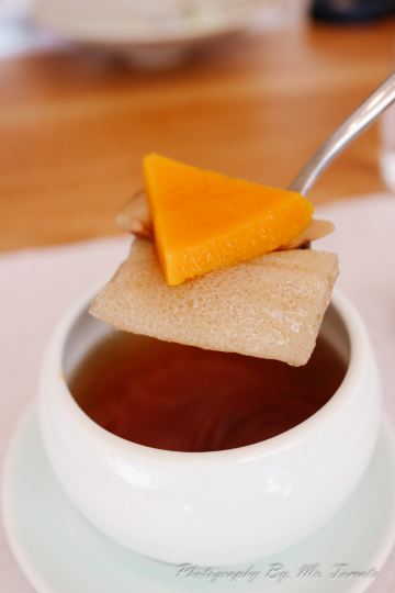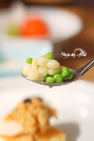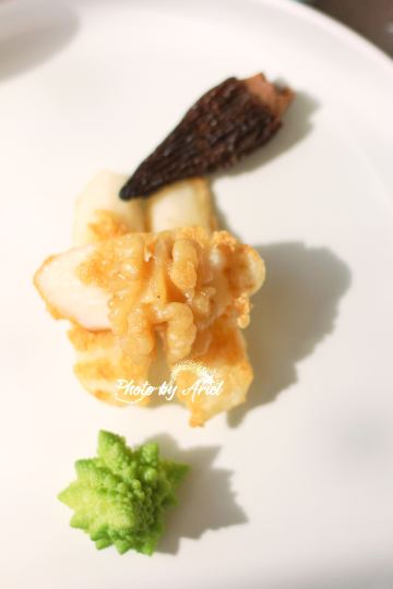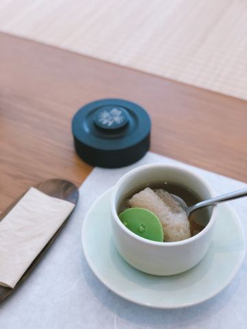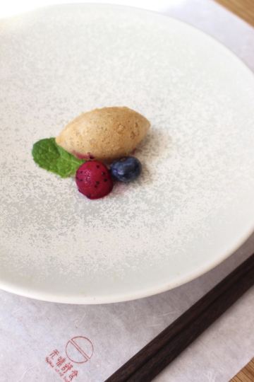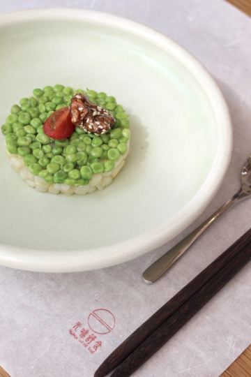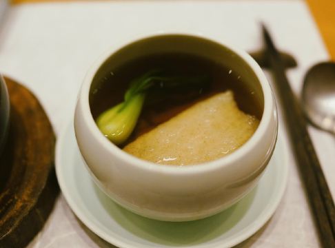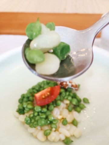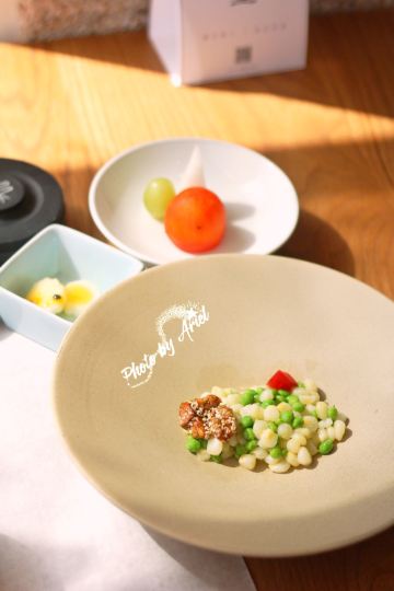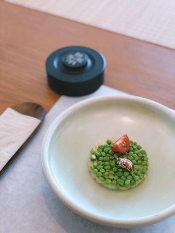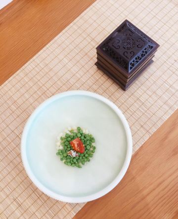 轻轻的一个蚊「前菜三小碟」里的果汁绣球菌的嫩爽值得肯定,牛油果山楂的温润,黑松露素皮卷的实味,都是很开胃的。 麦香清甜笋:时令的青笋,具有静心散热、开胃健脾,海带和五常大米熬制而成的汤底现场冲泡,不但去除笋的涩味,同时给这道菜品增添一分清淡,品尝到了食物本味。 甜蜜豆玉米胚芽,绿色的是甜蜜豆和去皮处理的白糯玉米,用山茶油炒制而成,自然融合,清新怡人,口味丰富,十分养胃。 咸蛋黄焗羊肚菌,选用云南的羊肚菌,以桃胶、时令笋制成馅料,裹上咸蛋黄炸制而成,口感酥脆。 今天的汤汤水水极为惹眼,颜值颇高的碧绿莲蓬竹笙蛋,带来夏天满满的清凉,松茸,来自香格里拉的竹荪蛋和多种野生菌文火慢炖4小时才完成了这道汤品,口感润滑而又清香。 第一次品尝到的海葡萄就被惊艳到了,颗粒小巧又圆润,虽然有点腥味,但是海的咸甜味道让我十分满足,这盘油醋汁海葡萄值得再次拥有。 海里中的新鲜生脆的海带苗煮和山区当季的青笋, 熬制的一口清新美味的煲汤,十分赞口。