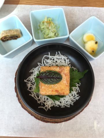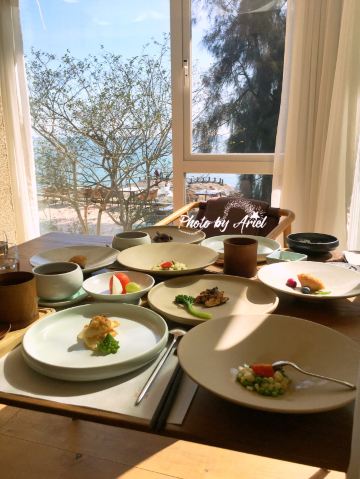 番茄看世界走进这家无味舒食,完全不像是去吃饭,更像心灵的净化,那种原木色与纯白色焕发的静逸让人感觉非常舒适。 地处环岛路沙滩一侧,无味舒食有自己的停车场,把车停好,便看到两位白衣婀娜少女相迎,淡淡的笑容和那种清雅的装修搭调。 走进店内更像去了禅寺一般,安静得能听见海浪声,宽敞明亮通透,琴棋书画在侧,一点也无法和餐厅联想起来,挑了张正对着大海的位置坐好。 餐食十品,皆是素食为主,桌上笔墨纸砚与餐具合而为一。虽说是素食,摆盘却十分精致。而且注重原生态,将那种心如明镜,无欲无求的态度也融入到食物中,这些绿色食材被大厨注入了灵魂,口味竟如此美味,而且吃完神清气爽,一点也没有油腻感,分量也是足够的。 午后的无味舒食也提供下午茶,在这么棒的环境中饮茶,别提有多放松了。 无味舒食(环岛路店) 环岛南路290号(书法广场旁)