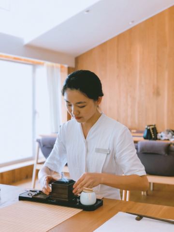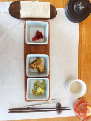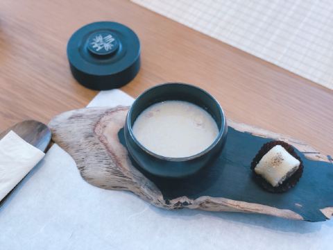 Shopaholic_⚰️当琴音夹杂着海浪的声音奔袭而来,食物本真香甜的气息在口中融化。无味舒食,让食物做回自己,致力于还原食物最本真的样子和味道。身处闹市,时刻想寻觅一处宁静,素食主义便是一种方式。曾经以为素食就是五谷杂粮,白菜酱水,然而,在无味舒食,当食物成了一种艺术,渲染了禅意。   独栋三层。其中,上两层针对享用定食宾食客,而底层则面向单点食客。当人们来到这个与世无争的地方,一切可以归于宁静,这里屏蔽了城市中的喧嚣与浮躁,也正是店家初心, 空间的禅意元素,透过落地窗便能看到窗外美好的景致,蓝天白云,汹涌澎湃,惊涛骇浪,日出日落,户外大自然馈赠的美景犹如挂画一般,自然和谐,宛如天成。在这里,穿着古典长衫的服务员风度翩翩,简洁素雅,一举一动,一颦一笑让人感觉优雅,服务过程充满仪式感,可谓一道靓丽风景线。这便是无味,想带给你一方净土,洗涤心灵的凡尘。   餐具是文房四宝的造型,雅致有品味。点的是单人定食,菜品遵循自然法则,进行少加工、少调味的制作工序,将一份食材的本味充分体现出来的烹饪理念。这些简单的食材,在经过厨师的悉心创意下,可以拼凑成一幅幅绚丽的画卷,每一个食材,从摆盘开始,亦是相当有画意。   一份当季百果园A级水果清新口腔。青白相间的甜蜜豆玉米胚芽,甜豆清爽,玉米胚芽软糯,仿佛食进一碗神仙八宝粥。黑松茸炒时令笋鲜美极致。姜饼瓜炖松茸汤澈鲜香。粗茶素饭,一碗小竹筒闽南松茸紫菜饭,宛如隐居山林。李渔说:吾谓饮食之道,脍不如肉,肉不如蔬,亦以其渐近自然也。一顿饭吃完,食材的运用、口味的巧思和外观的精巧,全部韵味其中。   ♨️非淡泊无以明,非宁静无以致远。于此食素、品茗、焚香、听琴,口腹满足之余,感受心灵宁静,品悟幸福的真谛。