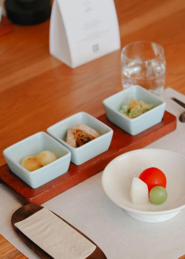 Arielccc没想到在这家店素食也是人间美味 受过很多朋友安利的这家无味舒食 终于在一个风和日丽的周末拔草了 在环岛路书法广场 高清海景位置 装修风格清新脱俗 店员穿着古朴 坐在靠窗的位置吃着精致的素食 真的能让人忘记烦恼静谧心灵 我们吃的是福套餐 共10道菜 每道菜都有令人惊喜的味道 第一道百果园A级水果٩( ᐛ )و 梨子柿子葡萄的甜美搭配 第二道鲜香浓郁的黑松露素皮卷 印象深刻的是第三道脆皮手工豆排 里面丰富的食材带来独特口感 甜蜜豆玉米胚芽和香酥芋茸角 都是很值得尝试的菜肴๑^ں^๑ 最后的杨枝甘露也相当精彩 吃完饭在外面散散步消消食 生活明朗万物可爱人间值得 是个很适合周末去吃饭的地方