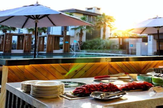 古月初夏鹭江佲家 · 吃喝玩住一站式满足,为你献上自助餐攻略 日料刺身区:肥厚刺身肉质丰腴、软嫩生蚝,搭配芥末、红姜汁提鲜。生蚝一致好评,温热清酒搭配三文鱼腩刺身在满足味蕾的同时温暖了冷冷的胃。所有档口的师傅当晚刺身区师傅手起刀落最忙,666~收集天妇罗、等常规日料菜品均有 甜品冰品区:一家酒店的自助餐的餐品水准打分,甜品占首位,在它们接触味蕾的瞬间可以感受到佲家的优质。甜品餐台上摆放多达十几种中西式甜点,芒果布丁、抹茶千层、榴莲班戟、拿破仑、双倍芝士、蛋挞、披萨、等。 烧烤区:开胃环节差不多时,可以开始惬意食用各种肉类了~ 烫煮区:老少皆宜一举攻下老人孩子味蕾的档口在这里,自助搭配,挑选好食材交给厨师就可以帮你私人定制小火锅了~牛鞭汤底,四物汤底点赞。 热菜区:如果吃到这里觉得已经可以 就大错特错了,attention,当晚热菜区域主打印度风,正中我的南洋胃。 蟹类、鹅肝、龙虾、海胆、鲍鱼、瑶柱、象牙蚌、蒸笼均无,大部分精品高档类外国血统没尝到,综合来说此档价格能尝到以上美食已是自助餐界良心出品。 自助攻略tips:座位区域顾忌不同食客需要,喜坐近窗位置望向泳池景观、有的喜坐在厅内与家人朋友开自助餐趴的,可选长桌区域,或作在双人小酌享受二人世界。 建议最佳顺序 饮水→水果→生鲜→火锅类→烤肉类→甜点寿司,按照顺序分层进食,最忌大杂烩,吃得健康,才够本。 人均:289rmb 位置:龙虎山路382号一楼西餐厅