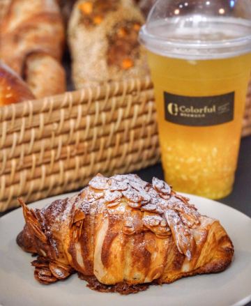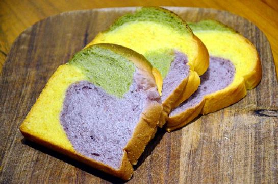 Crystal-塔晓佳❤️山川湖海,面包与爱。咖乐禧是一家藏在花鸟鱼虫市场里的美味面包店。并不起眼的门面,在夜幕时分会透露出温馨的黄色灯光,似乎在对过往的行人诉说“嘿,生活再苦,也有微甜的面包在这里等着你。” 「天然彩虹吐司」紫、绿、黄三色分别使用新西兰进口100[%]黑醋栗粉、北川抹茶粉南瓜粉,一次同时吃到三种不同风味,心情比彩虹还美丽~ 「黑醋栗洛代夫」无油无糖的天然酵母欧包,诱人的紫色来自于天然黑醋栗。里面还加入了蓝莓、榛子等,天然纯粹麦香中带着酸甜果味,好吃又完全不怕胖。 「水神洛代夫」水神,顾名思义就是面包的含水量非常高,加入了新鲜的蓝莓和干果,口感松软又不失弹性,难怪常年居店内销售排行榜的NO1。 「原味可颂」,一口咬下会经历酥脆到松软的双重口感,配上一杯咖啡,便是最经典的西式早餐。 「杏仁可颂」除了外表搭配香脆杏仁片之外,在可颂内部还涂抹了自制的杏仁酱。最大限度突出了杏仁的香气。