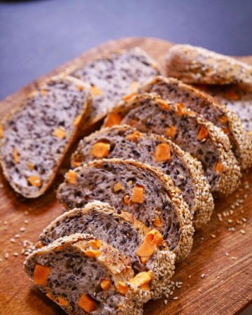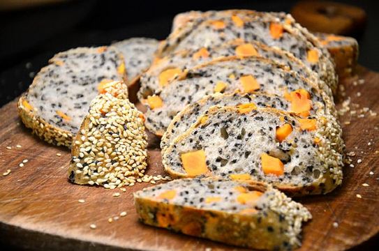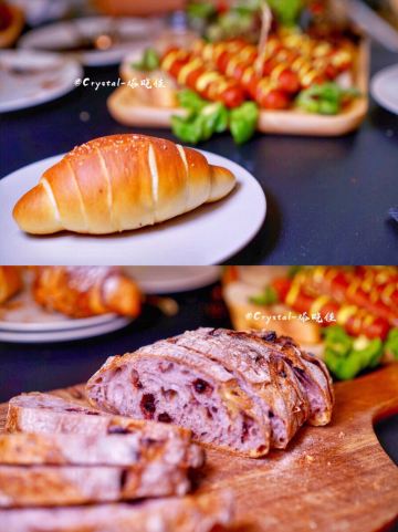 是佩圆呀早餐一定要吃好一天才会有能量❤ 身为一个每天嘴上喊着减肥又戒不了碳水的人,面包可以说是我日常能量的来源,个人一直对欧包情有独钟,这些年尝遍了厦门大大小小的面包店,总是觉得缺了点记忆中的味道。 周末日常在溪岸路买花,在这条充满生活气息的街巷中偶遇咖乐禧面包公司,黑色的欧式风夹杂在一排花店之中,恍惚间以为站在巴黎某个角落,毫不犹豫的便走了进去。 很温馨的三层楼,分为陈列区、烘焙间和休闲区,楼顶还有阳台,适合夜晚在上面坐坐,温馨的灯光烘托下倒也不失情趣,或者来个天台趴配着音乐美酒和美食,嗯~想想也是不错的。 如果你也和我一样是爱面包星人,那么我推荐天然酵母,无油无糖无盐无添加的欧包给你,毕竟只有好的碳水才不会给身体增添负担。 店内有各种硬欧、软欧……站在旁边就能感受到它们散发出的诱人香气。店员介绍说为了保持更独特的风味,她们一直坚持按季节与气候自己驯养酵母,以谷物、蔬果为原材配料,吃得出麦香本味里的四季更换。 一杯咖啡加一个可颂面包是欧洲人最常见的早餐和点心。杏仁可颂,面团经过复数以计的两次四折,切面如蜂窝般严密,内部如蝉翼般透明,表面酥脆内里柔软,惊艳的是里面还有一层自制的杏仁酱,怪不得充满了香甜的气息,第一口我就爱上了。 海盐卷,看似平平无奇却是没缘由的爱,初入口是自然的面粉香,整体的口感湿润,多咀嚼几下淡淡的咸香就像海水般席卷味蕾。 贝果圆嘟嘟的造型寓意美满,人们常说它是“外国人的馒头”。 天然彩虹吐司,每一个面团都需要经过反复折叠和多次敲打,推开来才能保证吐司的松软和层数,里面的紫、绿、黄色分别来自新西兰进口100[%]的黑醋栗粉、北川抹茶粉和南瓜粉,三种风味搭配和谐美好。 黑醋栗洛代夫,有天然的黑醋栗酸香气,天然酵种面包搭配无花果、榛子仁和蓝莓使口感更加丰富,用食材本身的甜味代替糖,整体有柔润度又不失嚼劲。 芝麻地瓜 芝麻融入面团中使每一口都带有浓郁的芝麻香,选用六鳌红心地瓜,切小粒而不是做成泥状让咀嚼时更有层次感,越嚼越香吃得到小麦的香气。 日本柚子蜗牛卷 切开的瞬间空气中弥漫着柚子清香,老板介绍选用日本小柚子自制成的柚子果酱,裹入酥皮中层层卷起,才有这浓郁的柚香,看似平凡原来如此用心。 其实面包有很多种吃法,结合时令配以蔬果肉食或茶饮,不论是Brunch还是下午茶都是很有趣的一种体验,每一次的搭配都能带来不一样的新鲜感。