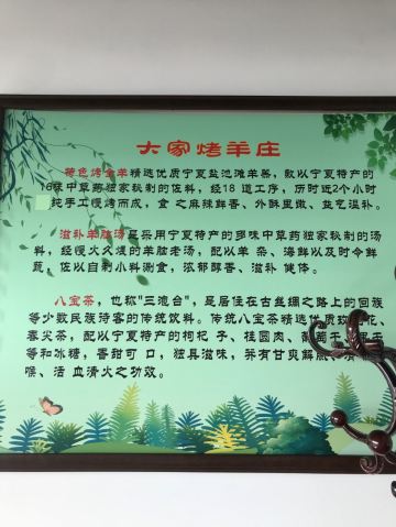 西夏一品三泡台,西北锅盔,烤羊排,肉夹馍,烤前腿,羊杂,宁夏三炮台,烤全羊,招牌烤羊蝎子,羊肉串,奶茶冰粉,铁锅炖羊肉,羊脑滋补汤,烤羊腿,铁锅炖小公羊,油泼面,油泼老豆腐