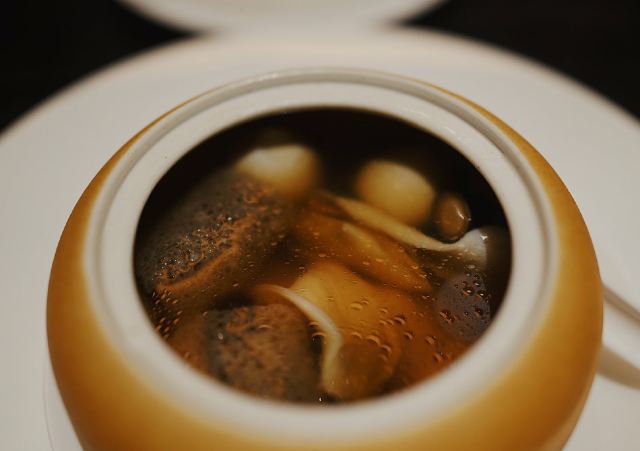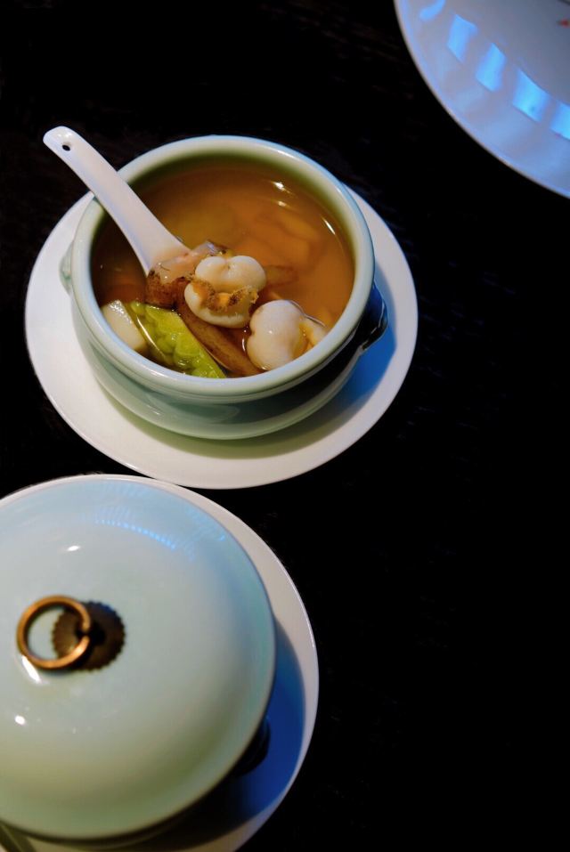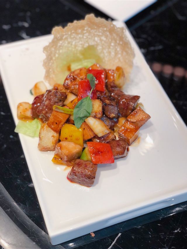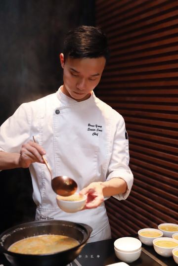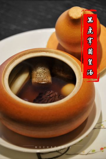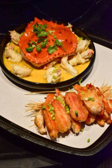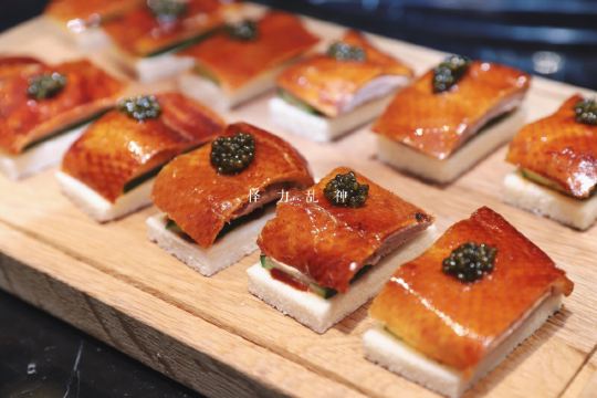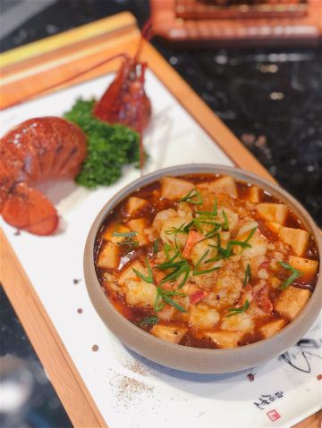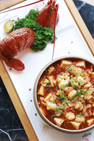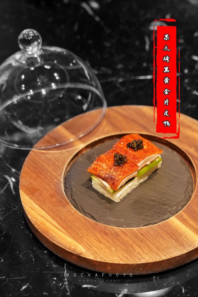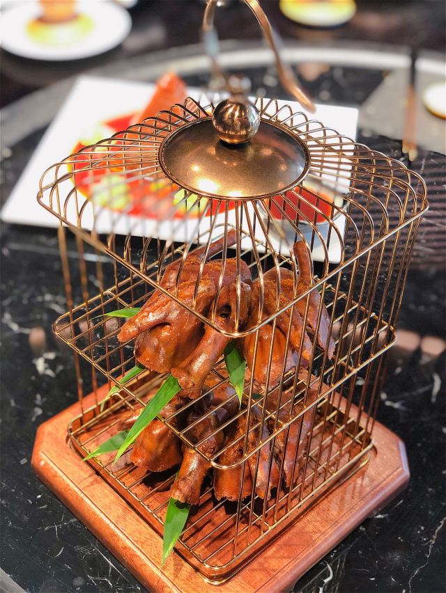 海皇龙虾汤爆炸饭,果木烤黑黄金片皮鸭,黑松露脆香素鹅,麻婆波士顿龙虾,葱油捞起银丝螺片,脆皮冰烧三层肉,冻花生汤,韭香浸长汀河田鸡,沉缸老酒浸罗氏虾,红鲟小炒龙牙官燕,椒香脆皮牛腩佐土咖喱,黑金流沙包,至尊宝塔肉,XO酱翡翠白玉明虾球,荷香神草蒸清远鸡,椒香妙龄乳鸭,糊辣水煮小黄牛,黑虎掌菌皇汤,干爆金钱牛柳粒