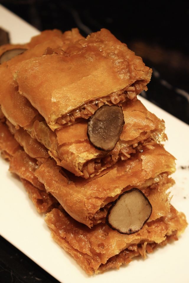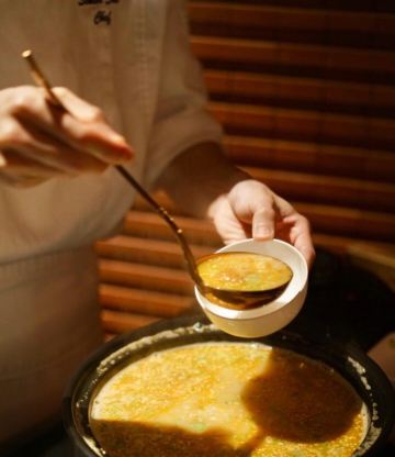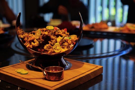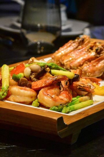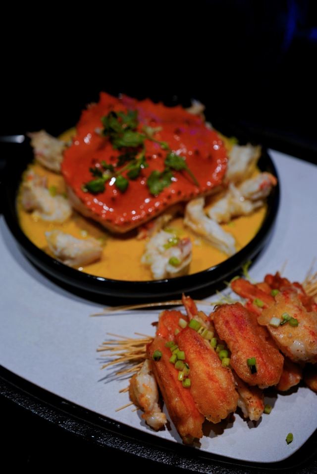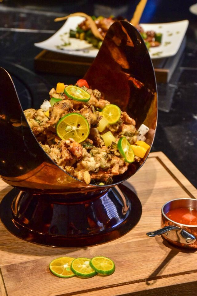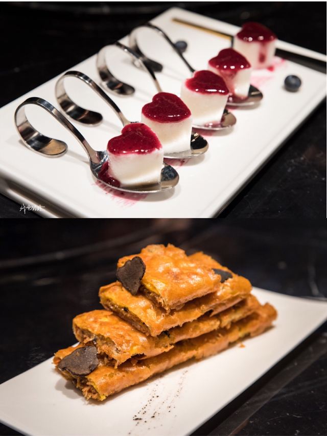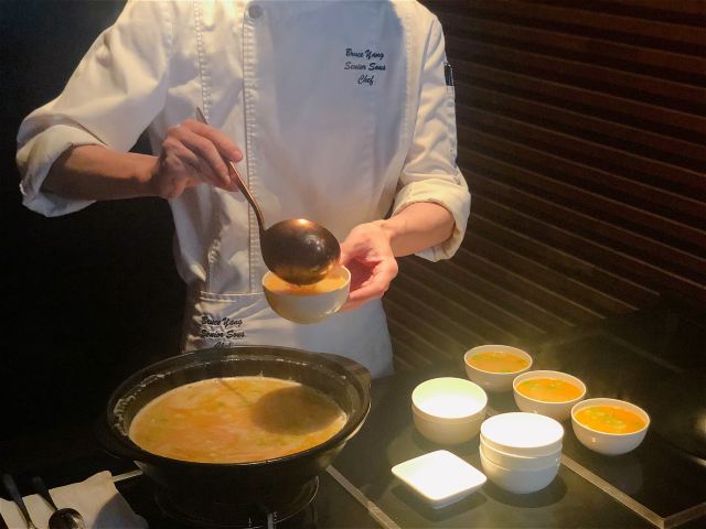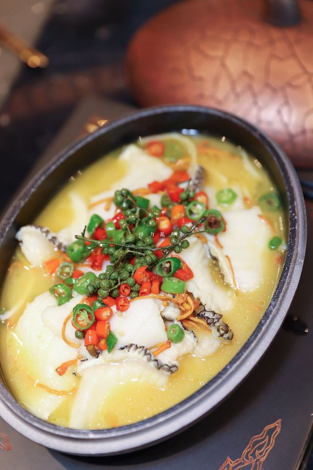 海皇龙虾汤爆炸饭,果木烤黑黄金片皮鸭,黑松露脆香素鹅,麻婆波士顿龙虾,葱油捞起银丝螺片,脆皮冰烧三层肉,冻花生汤,韭香浸长汀河田鸡,沉缸老酒浸罗氏虾,红鲟小炒龙牙官燕,椒香脆皮牛腩佐土咖喱,黑金流沙包,至尊宝塔肉,XO酱翡翠白玉明虾球,荷香神草蒸清远鸡,椒香妙龄乳鸭,糊辣水煮小黄牛,黑虎掌菌皇汤,干爆金钱牛柳粒