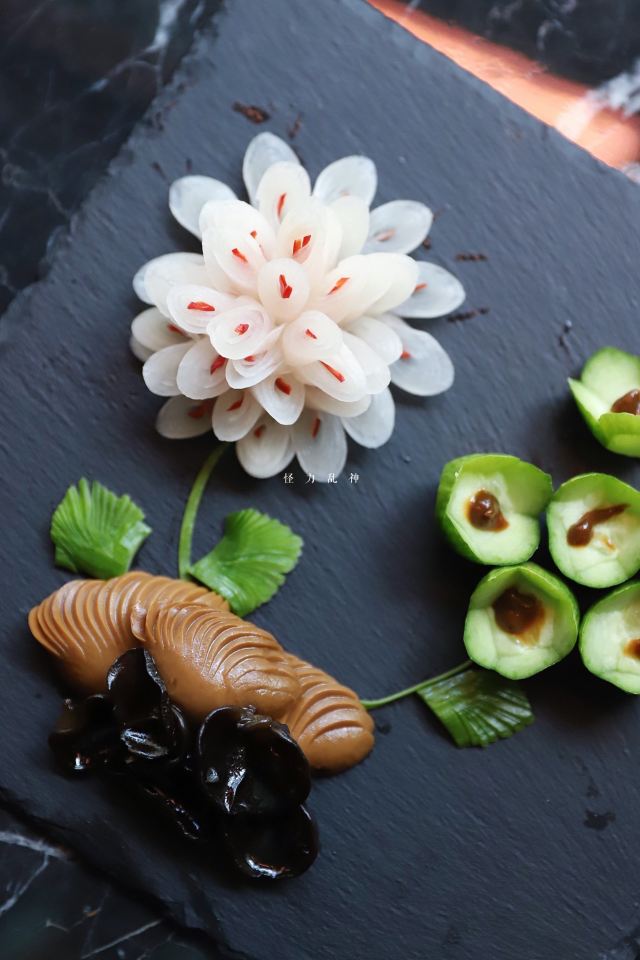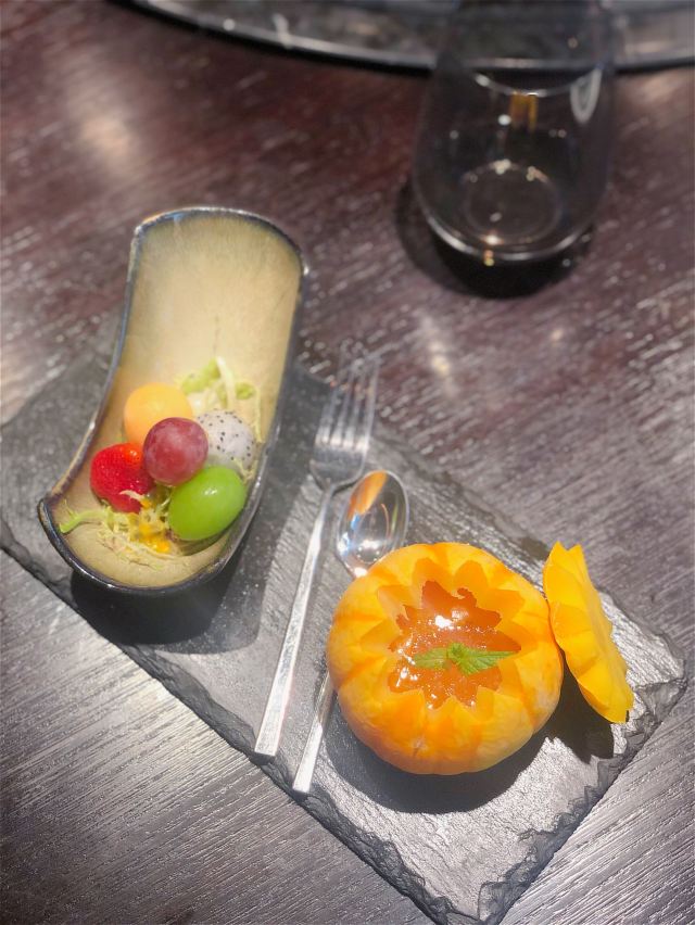 关于七尚,一直有一种特别的喜欢!虽然它藏在这个五缘湾这个高端富人区中!上次来吃了圣诞节限定,印象挺好,这次朋友邀约,我毫不犹豫的冒着37摄氏度的高温,即使太阳🌞当空照,我也来了! 没吃到期待已久的「至尊宝塔肉」,不过今儿点的菜也真的好棒! 「阿拉斯加蟹两仪」端上桌就仙气缭绕的阿拉斯加蟹两吃,采用蟹腿剥壳后,香煎的做法,让我这个最怕剥蟹腿又没有人能帮忙剥的小可怜爱上了吃帝王蟹!与蟹腿的烹饪方法不同的是,太雕蒸蟹身 「XO酱翡翠白玉明虾球」去壳还有拇指般粗细的大虾🍤,搭配着鲜美的芦笋、鸡纵菌。对了,这道菜最大的特色是虾头经过了一番处理,成了这道菜最独特的味道!喜欢虾头味道的小伙伴,可不要错过了! 「金柱野菌三层楼」这个还挺神奇的,抽屉里还有杏仁片!自制的豆腐味道独特,与路面那些豆腐的感觉不一样,细腻,翠绿豆腐面上据说是海苔,不过我觉得更像是一种菜叶切碎的模样。 「梨山黑蒜旧院鸡」,一道吉祥寓意摆盘的,颇有种大鹏展翅的感觉。 「银丝葱油螺片(凉菜)」这道菜一开始就上了,挺佩服师傅的刀工,能够将这个螺片成这么多片。 「缤纷果蔬沙拉」用水果做皮,生菜当馅,吃起来,有一种夏日的气息。#吃在厦门#