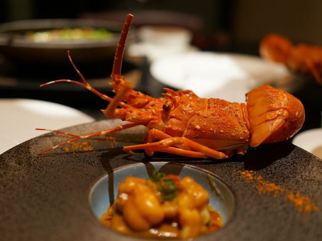 红砖、莲花纹、龟粿模是闽南志,而每一道菜仿佛又有对江南的一些眷恋,中餐厅的菜品,有四季变换的身影,一切是新的,视觉和味蕾的盛宴,果木烤黑黄金片皮鸭一口入魂,龙虾爆炸饭在口腔里有趣起舞, 葫芦罐儿藏着新鲜的自然馈赠。 总之灵魂是快乐了,新的菜单 听说妙趣横生。